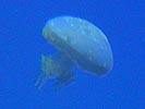 i noticed the clumps of vegetation on the sandy bottom, and figured they were probably sea grass, or at most sea anemones (even though anemones would never live this shallow). i was trying to find the jellyfish when i realized: