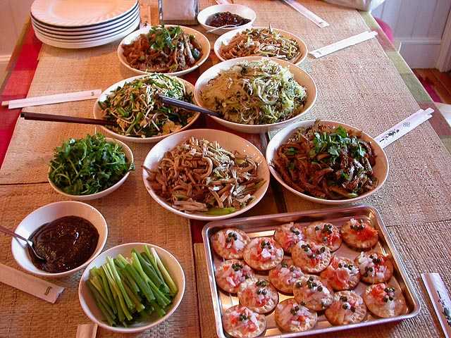 we had already secretly been eating, most of the food cold by then. when they finally arrived - my godmother, her son alex (remember: not alex my boss, not alex wong who moved to tokyo), her other son jack's girlfriend (jack was at work and would arrive after 9pm), our family friend (fresh from costa rica), and her daughter vanessa (who's graduating from college) - there was the usual tour of my place followed by photo taking before we started to eat, turkey "bing" style.