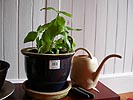 for dessert, flan and watermelon. approaching midnight was when everyone started to leave. my parents were the last to go, they packed up all the food, leaving some leftovers. dirty dishes went into the dishwasher, the first time this year i'm using that appliance. the weather outside hovered in the 50's, and i thought about moving in some more plants beside the basil, but it's time for some tough love. anyway, whatever plant doesn't die from the frost-like conditions will be killed off by the squirrels. pessimistic gardener i am!