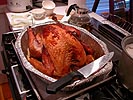 my father dropped by around 3pm to cook the turkey in my oven. around 5pm my parents and my aunt came over bringing armloads of food. fortunately i wasn't making dinner, just the dessert (flan). though the dinner party was scheduled for 6pm, the guests didn't show up until almost 2 hours later.