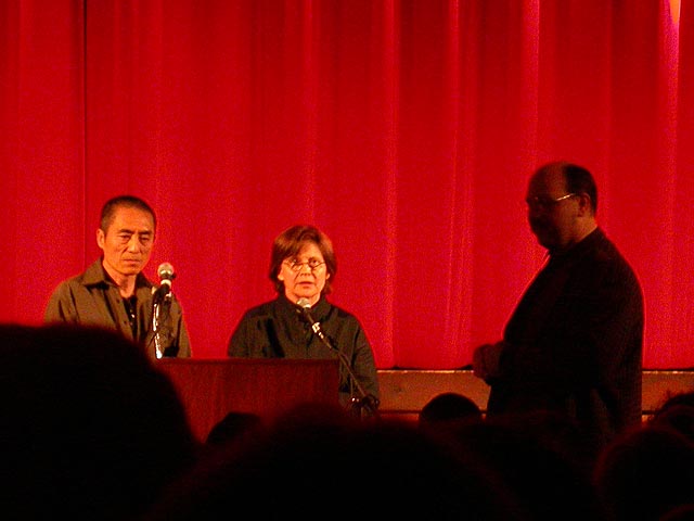 i had the unfortunate pleasure of sitting behind a chinese boy dressed like michael jackson with a cane, who carried with him that sort of annoying nerdiness that instinctively makes others to want to give him a beat down. he'd laugh at zhang yimou's anecdotes before the translator had a chance to translate, and had a tendency to shout out answers even though nobody asked him.