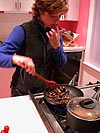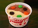 into the oven while julie made some wild rice to go with the kebabs. the whole thing was pretty quick to cook and we ate while watching some old game show, a barbecue ribs competition in memphis, then later the new season of queer eye, the one with the immature twins who express themselves through physical violence, completely undeserving of a makeover (you can transform the outside, but its the "inside" that really needs the most work, and that requires years of therapy and anger management). julie brought dessert as well, hoodsie ice cream swirls in a cup (m&m's were extra).