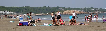 when i heard that it'd be in the 90's today, i knew i had to take the day off, and i'm quite sure i wasn't the only one. instead of faking an illness so i wouldn't have to work tomorrow, i decided to just tell my bosses the truth, that i wanted to take a personal day because of "the weather." besides, i would write about it anyway (if they read the weblog) and i would have a hard time explaining why i was so tanned come thursday. so this morning i woke up and got ready for the beach, the only place worth going when it gets hot like this. julie just happened to be going to gloucester, where her family had been renting a beach house for the week to coincide with the celebration of her father's birthday today, and i was able to tag along for the ride.