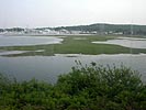 neither one of us had shoes on, and when we tried walking on the rocks, it was too painful and dangerous so we scratched the idea, even though it appeared there's another parking lot and more beach further beyond. we headed back, and saw the salt marsh located directly behind the beach houses. it seemed kind of wrong, like development was encroaching on ecologically valuable land, but the area seemed pristine enough, perhaps the people who live there take care of it, or just don't throw stuff into the salt marshes.