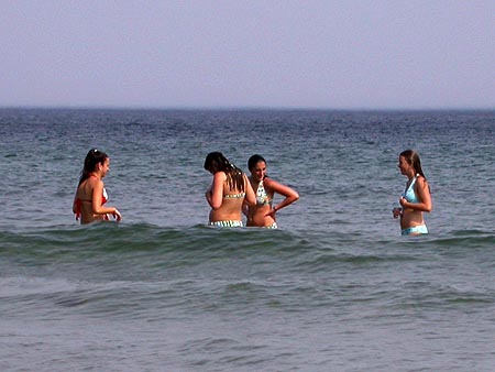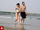 the girl would strut around, running along the shore, while the boy would chase her from one side of the beach to other. occasionally they'd splash water on each other, or maybe one would jump on the other's back, or they would embrace. they seemed like newlyweds, and i was very curious to know their story. where are they from that they can be so pale? are they playing hooky as well? how can she love someone with so much hair on his head? "if the water wasn't so cold, they'd be out in the ocean doing it," i told julie, who agreed with me.