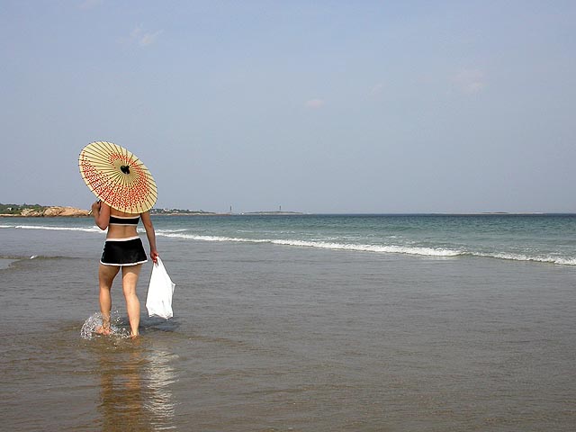 we camped out our stuff next to julie's family on the beach, applied sun block (spf 45), ate our lunch, before heading into the water. let me describe the sensation: the day was hot and humid (the sky hazy), and on the beach underneath the noonday sun, i was sweating as well, but as soon as i hit that ocean water,