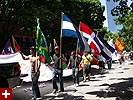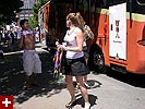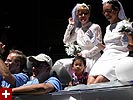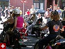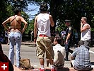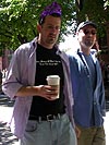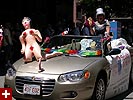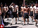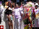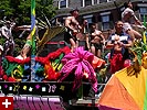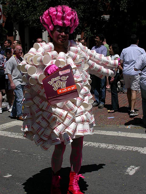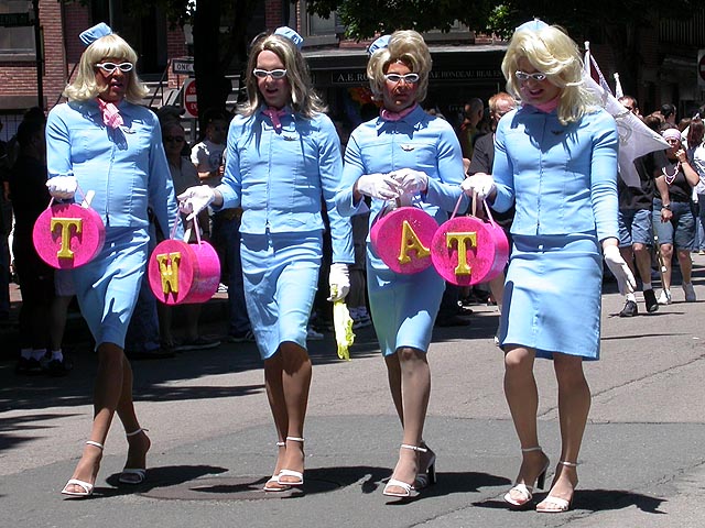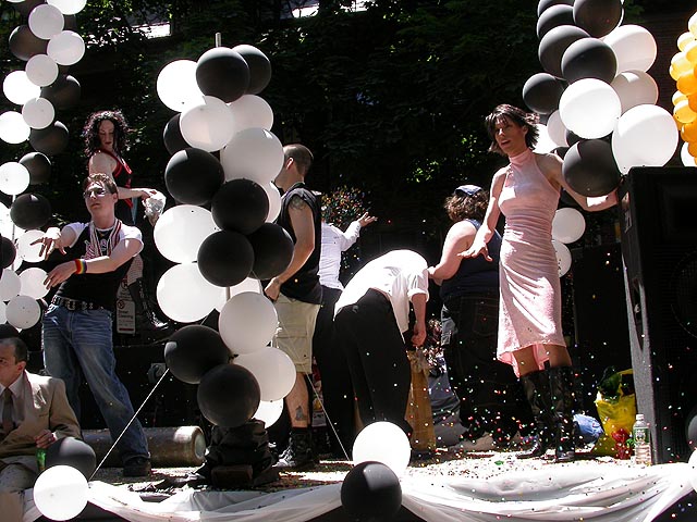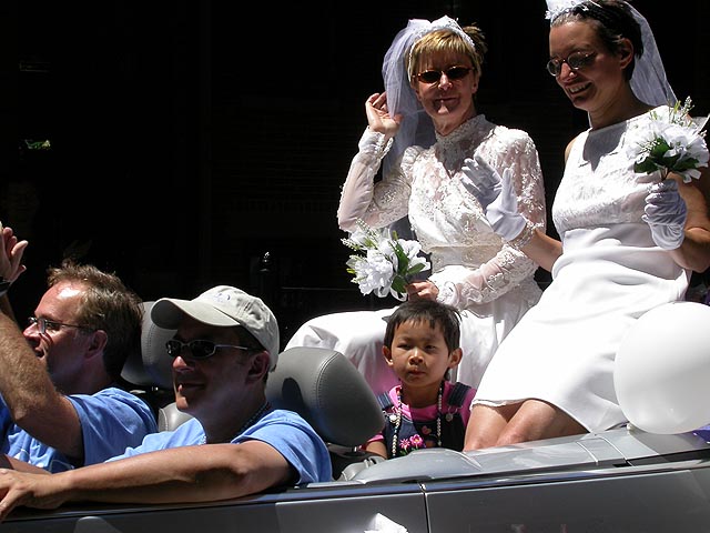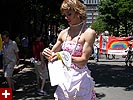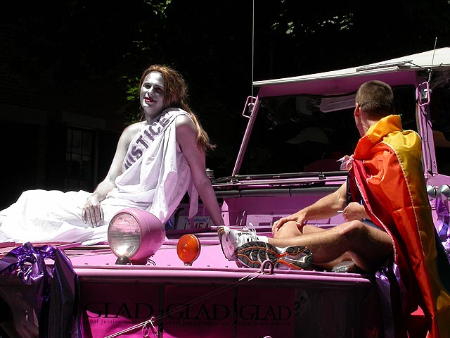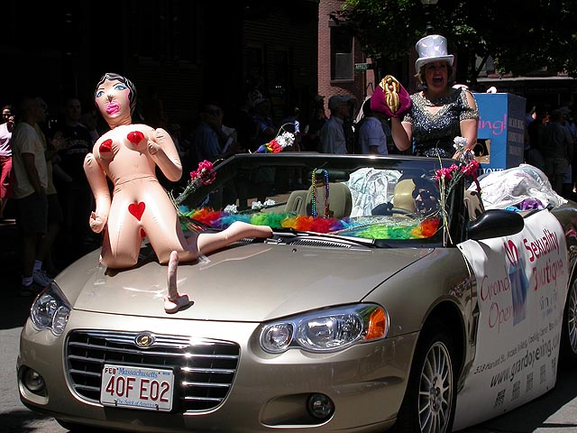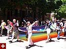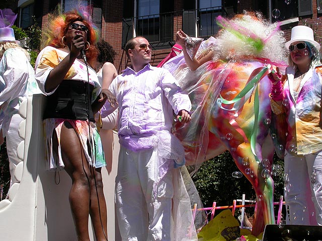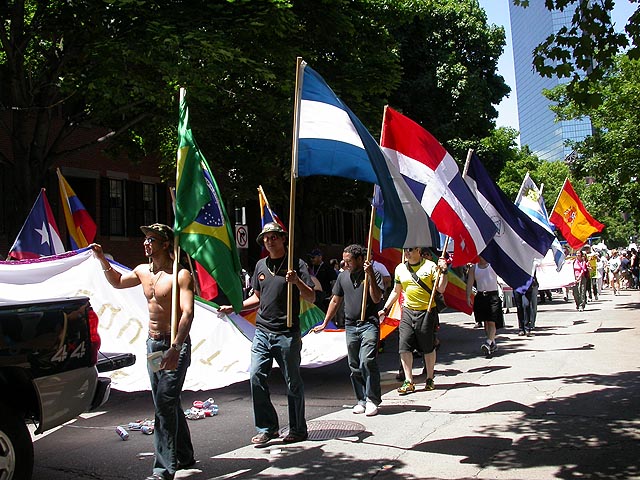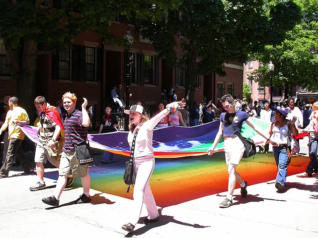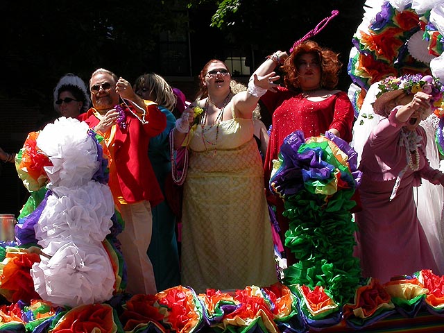 the pride parade is definitely the most interesting in terms of eye candy. unlike last year, i wouldn't be wearing a tuxedo again, but i had on my "chinese food" t-shirt, hoping to garner some special attention nevertheless. ed led us into the heart of the south end, near the beginning of the parade route. we waited underneath the shade of a tree for the parade to start. the first to arrive were the bikers, the women followed by the men. next came mayor menino and his entourage. the following is an abbreviated sampling of the festivities: