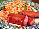 tonight's episode dealt with dean's wedding and how in a fit of inebriation as a result of a bachelor party (despite the fact that dean is still underage, for shame!), he reveals to luke while in a sleepy stupor that he's actually still in love with rory. meanwhile, loralei and suki break ground on their new inn. for dinner, i made some instant indonesian rice and cooked up the rest of my kielbasa (everyone knows polish goes well with southeast asian cuisine).
