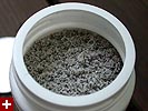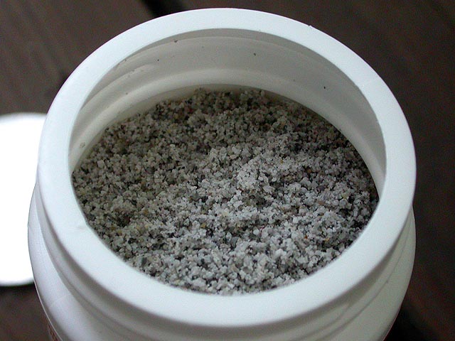 i unscrewed the top to remove the "freshness" seal. inside, there were clumps of granules that looked like either damp beach sand or road salt. of course i took a whiff. i've smelled liquid coyote pee before, and it's an extremely foul odor.