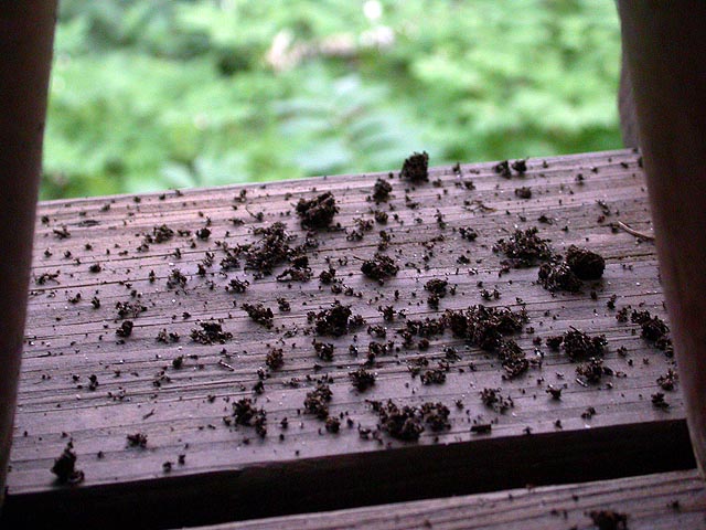 i was curious to find out if the fox urine had worked. when i got home i saw that it didn't. once more, the backyard porch was littered with dirt kicked out from the pots.