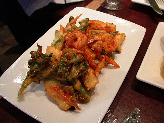 next came our two appetizers, the morning glory which resembled thai tempura and some thai omelette. the thai omelette was nothing to write home about, it disappeared without a fight,