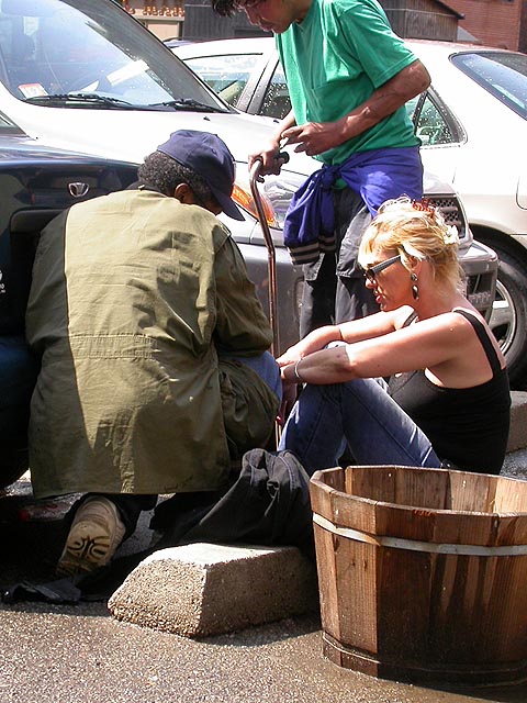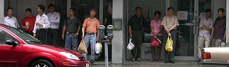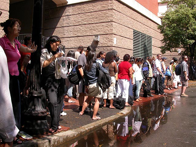 the drama of a downpour disappearing completely. i saw people waiting for the fungwah buses to escape to new york this weekend. behind a parking lot i spotted some people acting awfully suspicous, i suspect some sort of drug interactive was taking place. the sky was clearing up and i kept my eyes opened for signs of a rainbow (didn't find any). the overcast gave way to puffy white clouds then to a clear blue sky. i returned to the office.