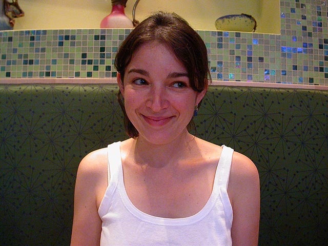 on the train ride back home, i briefly thought about renata, maybe she wouldn't be busy tonight and maybe we could do something, but then i thought maybe seeing each other on consecutive nights might violate some sort of rule of engagement, and besides, i assumed she'd be busy, tonight being the start of the 4th of july long weekend and all. so instead i was happy to spent a quiet friday evening alone, come home, take a bath, read the latest issue of entertainment weekly, drink a can of soda, eat a bowl of cherries, then later cook up some ramen for dinner. i was in the kitchen washing the cherries so i didn't hear my phone ringing. i listened to the message, from renata, "tony, call me when you get this message," and i thought i was in some kind of trouble, because the tone over the nokia sounded serious. i called her back and she asked if i wanted to have dinner; my answer was "of course," renata unknowingly rescuing me from a night of ramen. i asked for enough time to shower and freshen up, and she arrived 30 minutes later.