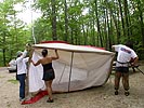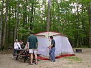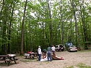 and most of them were already reserved for this weekend. we had reserved two conjoining sites of our own ($14/night each, a minimum of 2 nights per site), one for our family, one for mister fan's (fansusu) family, who would be coming later in the afternoon. i made a quick check of the bathroom conditions. there was no showers, but there were enclosed outhouses, nothing more than a simple nonflushing toilet. the smell, to say the least, was not pleasant, but better than doing it in the woods i suppose.