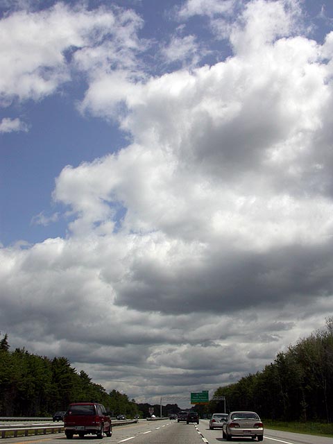 after picking up some dry cleaning (a pair of red pants) and stopping off at a macdonalds rest stop in lexington to get some gas and breakfast. i rode with my father in the camry, my mother went with my sister in her land rover, and my aunt and uncle drove their maxima. we kept in touch with tiny motorola walkie talkies that would occasionally pick up stray conversations from other travelers. my father told me he went to target yesterday and the camping aisle was completely empty. i always forget something when i travel, and today was no exception: i forgot to bring an umbrella and a flashlight (my parents had spare flashlights though). the weather was nice until we got closer to maine, when the clouds suddenly thickened and it looked like it would rain (but it never did).