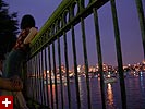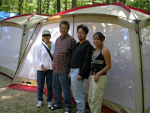 i got home from maine at 3pm and checked my e-mails. there was one from renata alerting me to the fact that she was still in rhode island at her parents' place. i gave her a call, nobody answered the phone, so i left a message on the machine. when i got back out from my shower, she called me and said she was returning to cambridge so we could go see the fireworks on the charles river together. renata arrived around 6pm. when she told me she ate lobster earlier, i asked to smell her hands and could detect faint traces of that shellfish (of which i don't exactly hate, but i'm not very fond of either, even though renata told her father that i hate them). she wanted to see the photos i'd taken while i was up in maine. never mind all the nature i saw during my stay in the northern state, renata was most entertained by the series of yang family portraits in the forest where i was the only one who wasn't smiling. getting late, close to 7pm, we left for the T station. along the way, we bumped into ed and joe on oxford avenue, enroute to bruce's place. we exchanged some pleasantries and continued on our way.