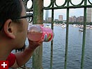 where we got some falafels to go from the falafel palace, then walking via mass avenue down to MIT. in the sky we could see a goodyear blimp floating about (you know it's going to be good time when blimps show up, that's just a given). we could already see a general exodus of people making their way in the same direction. during our walk, renata pointed out all the restaurants and cafes she's been to along that long stretch of road. we stopped briefly by the student center, renata waited for me outside while i went in to use the bathroom. coming back out, i secretly bought some candy from the convenience store as a surprise.