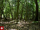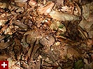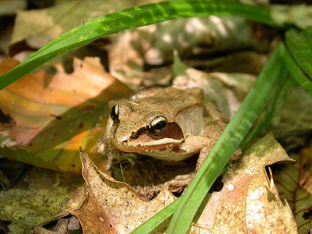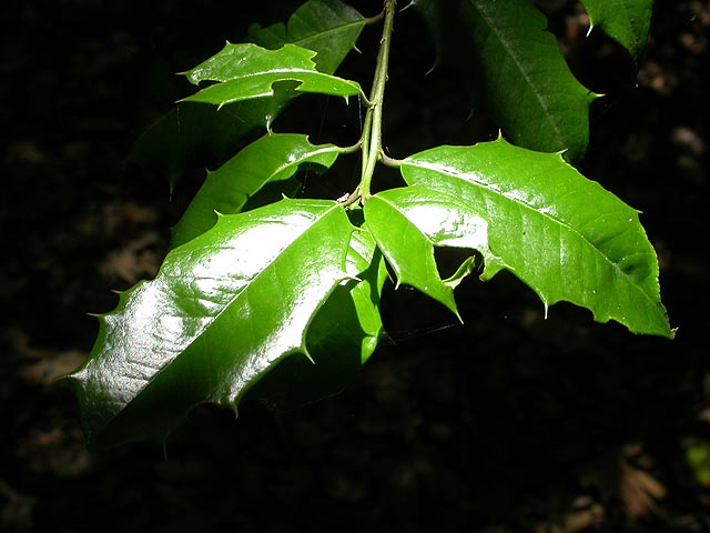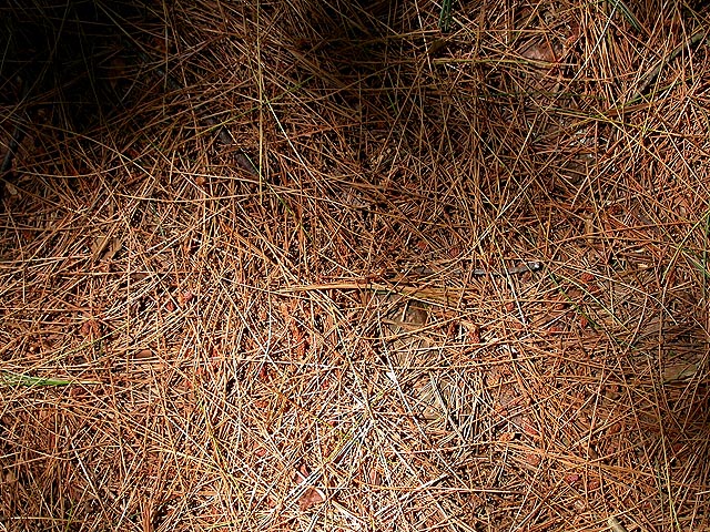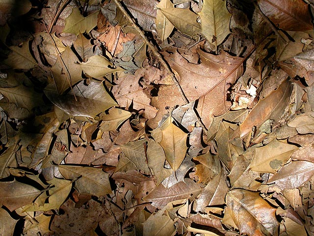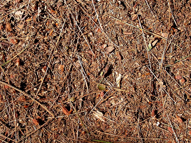 at trail marker 15 i walked west into an area where supposedly there was an american holly grove. here i found a wood frog, caught my attention when i noticed something jumping off to the side. this was a much less traveled trail and i couldn't be sure if i was going the right way, until i came across the holly grove. it's not a very large area, maybe 50-70 trees at most, but it's definitely something you don't see everyday. holly leaves are evergreen and make for interesting ground cover since they're so dense they prevent anything from growing through, like a dead zone.