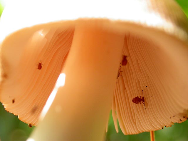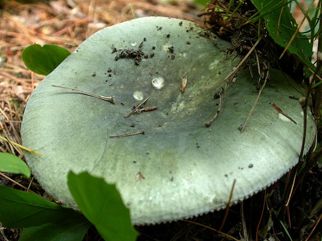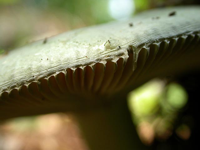 i think the second half of the summer is peak mushroom season, as i'm starting to see more and more fungal activities in the places i visit. a particularly cool mushroom that grows in these woods is the variable russula, which can get as large as 6" across and come in this pale shade of green. i've never seen a green mushroom before.