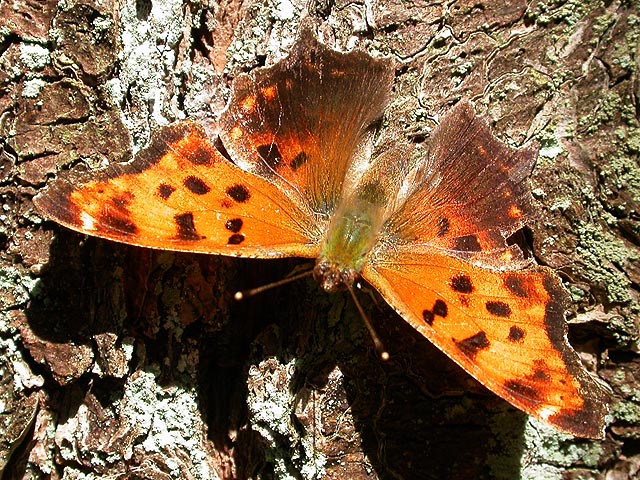 i used to think it was impossible to get good butterfly photos, they're harder to capture than dragonflies. dragonflies have that keen eyesight, but i don't know what is it about butterflies that make them so alert to oncoming danger (vibrations in the air? sense of smell? eyesight?). they are very skittish and because they're good flyers, chasing them is out of the question. but if you're patient, sometimes you can catch one basking in the sun. so now butterflies are my new thing. you don't have to go to costa rica to see exotic looking butterflies: we have plenty of them here in new england. the most common ones i saw were eastern commas (that's right, they're called "commas"). occasionally i'd see a large blackish butterfly which i thought were black swallowtails but they're actually red spotted purples, which i've never seen before (or maybe i have, and always thought they were swallowtails).