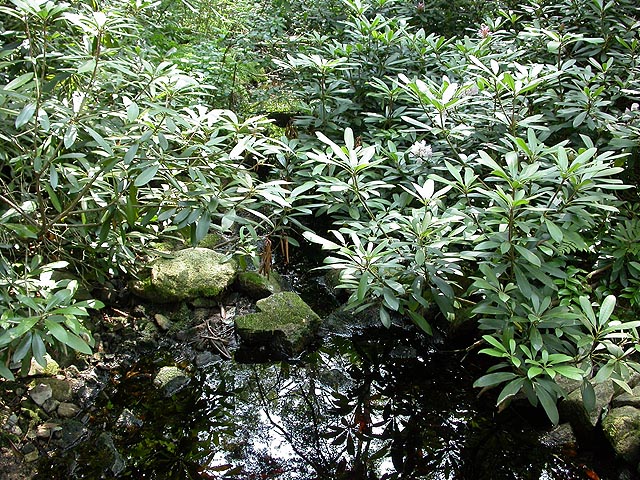 the start of the milliken memorial path. in the 1920's arthur milliken dedicated the path to his late wife mabel, and planted azaleas and rhododendrons throughout the length of the path. unfortunately peak blooming season for those plants are over, although a few late season bloomers were still displaying pale pink flowers.