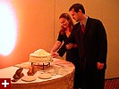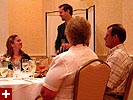 a combination of traffic and getting lost made them get here after 6pm (the reception started at 6pm). after some quick changing and cleaning up, we left for the marriott hotel in kendall square. i had on my brand new red pants, breaking them in for the very first time, a desperate attempt to grab some attention. in attendance were local friends of dan and cymara's, as well as dan's family from pennsylvania.