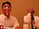 after the reception dinner, john, deanna, and i came back to my place. with the night still young (10pm), john and i walked down to harvard square to get some bubble ice tea at lollicup. there was a crowd tonight, mostly asians, the guy behind the counter waving to me in recognition. we came back to the house, where deanna was already asleep on the couch (she soon retired to the bedroom). john tried to keep up but feel asleep on the slumbering couch as well, craddling a bottle of anchor steam in his hands.