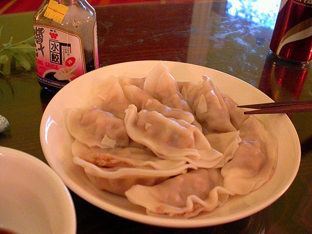 she's kind of picky about her food (kind of? okay, really picky), but she ended up really liking them, along with the special spicy dumpling sauce. instead of dipping (the traditional chinese way of eating dumplings), she poured the sauce onto her plate of dumpling and ate it like that. after she finished, i caught her dipping her finger in the excess sauce and eating it. i guess she really liked it.