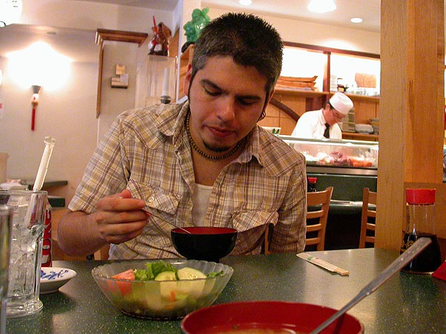 the last day sort of just happened. kristine already wasn't going to come in, and there were less and less things for the rest of us to clean up. my father dropped by briefly to pick up the computer desk that he bought, along with a bunch of stuff i couldn't easily transport via subway, like a roll of chicken wires. soon afterwards james and i went to lunch. the apollo grille was nice and air conditioned, the food clean and delicious and well-presented.