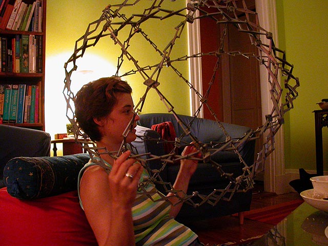 stupid with the sphere despite the fact that we weren't even drunk (so think how much more fun you'd have with it if you were). the hoberman sphere, if you've never seen one, is this collapsible ball made up of interlocking