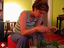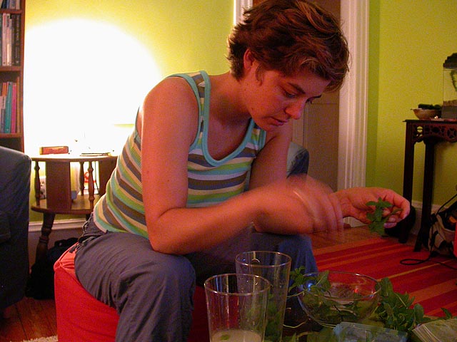 the mojitos were just crushed mint leaves (homegrown from julie's secret garden) and ice (made with the finest cambridge water) and water and sugar and lime juice minus the rum. "that's it, i'm getting you a juicer,"