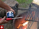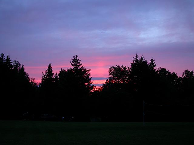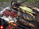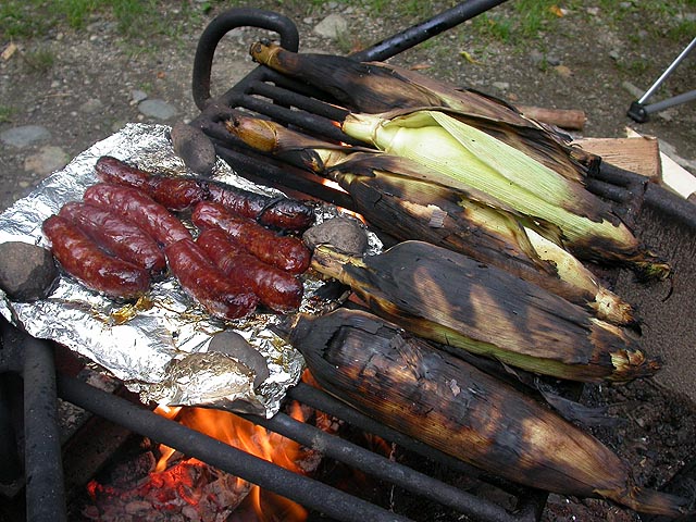 returning to the camp once more, my father started the fire so we could cook dinner. he had leftover wood from their previous camping trip, but we also had to buy some more because we didn't have enough ($3 a bundle). he had a portable water pump which when he ran dry acted like a high-powered blowdryer, feeding the flames, accelerating the fire. while we waited for the fire to get going, my parents pitched the tent inside the leanto. we cooked some chinese sausages (over tinfoil) and some ears of corn. at one point the ranger came by and told us that there'd be a maple syruping demonstration at 7pm. we ate quickly and headed over to see one of the things vermont is famous for. turns out it was just a video, including a woman singing a song about maple syrup. i was so embarassed i couldn't even look at the screen. the only good thing that came out of it was the free maple syrup samples served in small dixie cups. i choked on my first sip, completely caught off guard as to how sweet and delicious natural maple syrup can be.