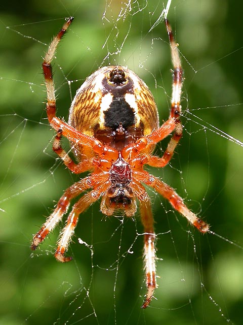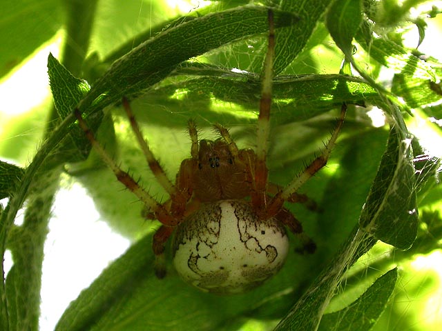 they sell a bundle of firewood for $3 and ice as well. according to the ranger, there was only one spot left, a leanto ("birch") near the contact station. surrounding the site were jewelweed plants and wild raspberries. large marbled orb weaver spiders spun cobwebs which caught the japanese beetles feeding on the foliage. the first thing we did was to eat lunch, my parents cooking up some dumplings in a pot of water over a coleman tabletop stove. fed, we decided to hit the nearby trail while the weather was still good (there was no evidence of the approaching southern hurricane remnants).