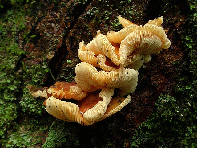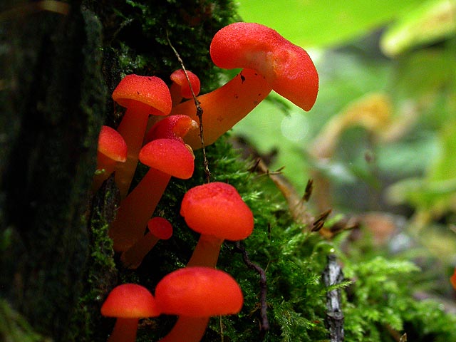i think it had something to do with the moisture as well as the smell. unlike costa rica though, the forest was surprisingly silent. no birds singing, no chipmunks chirping. after a while, i figured i wouldn't see a lot of nature on this trip, and would just enjoy the forest for what it is. there were no birds, no frogs, no toads, not even a squirrel (although we did see an angry red squirrel back at the camp later, when we started a fire) or a chipmunk. the only thing interesting were the occasional flashes of color from recently emerged mushrooms, and there were enough different varieties for a fairly successful mushroom hunting expedition if nothing else.