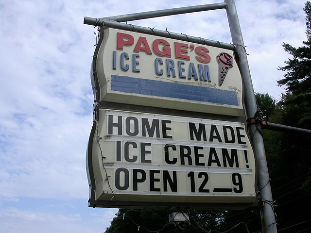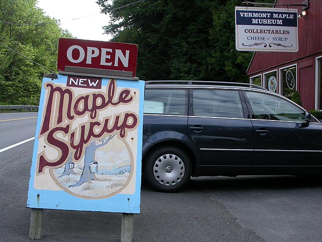 when we got back to the camp, we drove out looking for fresh vegetables at the farmer's market. we didn't find any markets, but we did visit a roadside ice cream parlor selling local homemade ice cream. i paid $4 for a double scoop of maple walnut. those are city prices! or maybe they're tourist prices. there was also a maple syrup museum, which wasn't a museum at all but just a place that sold souvenirs. not even very good souvenirs at that, books by the windows were dusty and sun-bleached. we bought a small container of real maple syrup nonetheless, for tomorrow's breakfast. coming back, we passed by the scenic roadside vista, but after having seen the view from on top of mount olga, this wasn't particularly exciting.