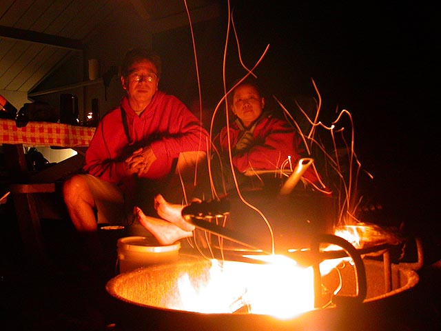 once the sun goes down, there's really nothing to do but to stare at the fire, watch the embers trace lines in the darkness, listening to the pieces of wood crackling. flames can be mesmerising, and i wasn't satisfied with the fire that we had, i wanted a bigger fire. my parents had bought a big cooking pot so they could heat water to soak their feet. a piece of glowing ember fell into my shoe as i quickly tried to take it off before i got burned. later in the evening, i went to go take a shower. the facilities are amazingly clean, although the showers operate by push button and every 30 seconds i had to push otherwise the water would turn off.