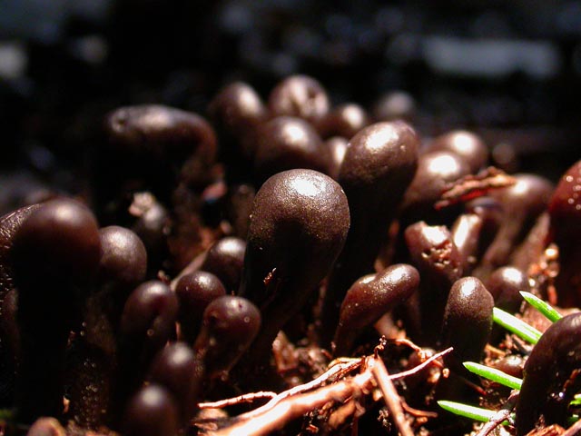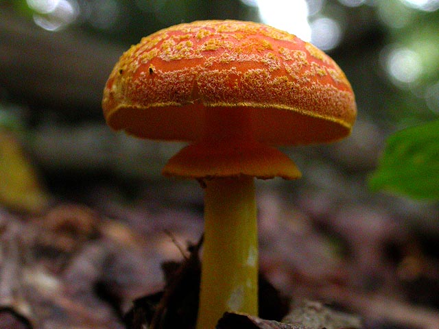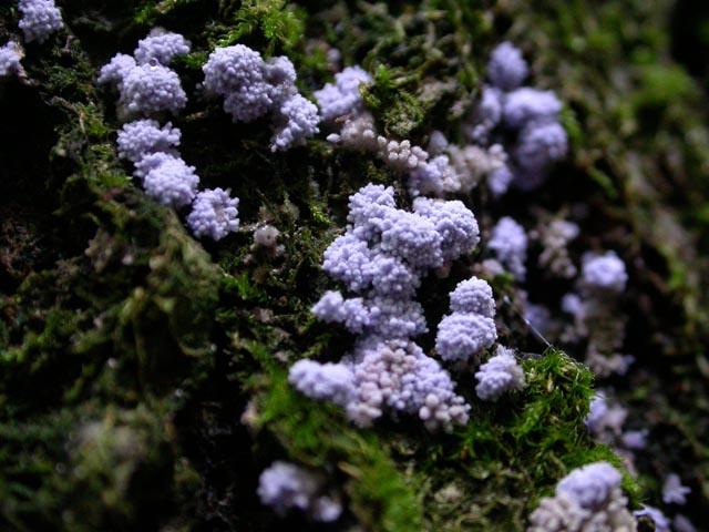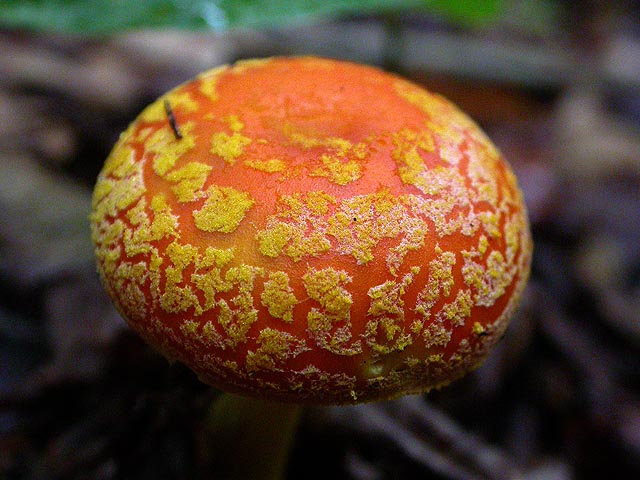 but because i was too interested. everyone that i saw, i had to take photos, and at that rate, i would never leave the forest. besides the efts, there were also a lot of mushrooms of all shapes and sizes and colors. my favorites are the deadly panther mushrooms, the little white spots on the round cap reminds me of a satellite photo of planet earth with clouds. i also like the purple bloom russula, purple isn't a very common mushroom color. the "funnel" mushroom was also a nice one to photograph: with the headlamp, i could light it up from the top to really show the details of the semi-transparent gills.