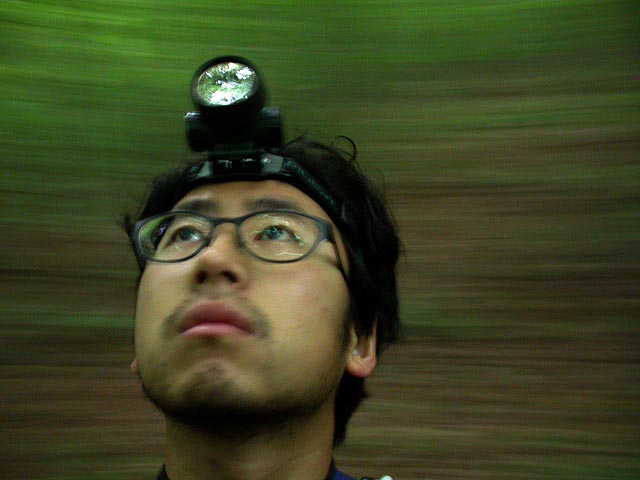 i dropped my bag, rolled up my sleeves, put on my headlamp, and crouched down to take some photos. feeling that i didn't get enough of the eft from yesterday, i was determined to shoot the hell out of this one. this particular eft was a little more animated that the one i met yesterday. it eventually tried to walk away (i don't think they're capable of running), but i cupped it in my hand, and tried putting it on a piece of moss for better visual appeal (it didn't look good, it was very dry moss, and that seemed to bother eft 2).