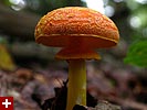 the fog (more like the clouds) was much thicker here, and hardly anything could be seen from on top of the fire tower. i came down from the tower and continued onwards with my descent. eft 6 i saw while i was taking photos of a yellow patches mushroom. and pretty much all the remaining efts i saw were spotted that way, i was taking photo of something else before glancing off to the side and seeing a red eft.