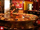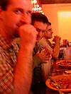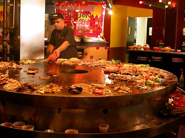 huh? what he said was actually sort of interesting, and pretty scary too. i realize now that i'm in poor financial shape because i'm not investing enough, might as well throw my money and my future away. after that sobering presentation (filled with colored charts organized in a freestanding flipbook), it was time to eat. our waiter gave each of us a ticket, we got our bowl of raw ingredients along with a sauce,