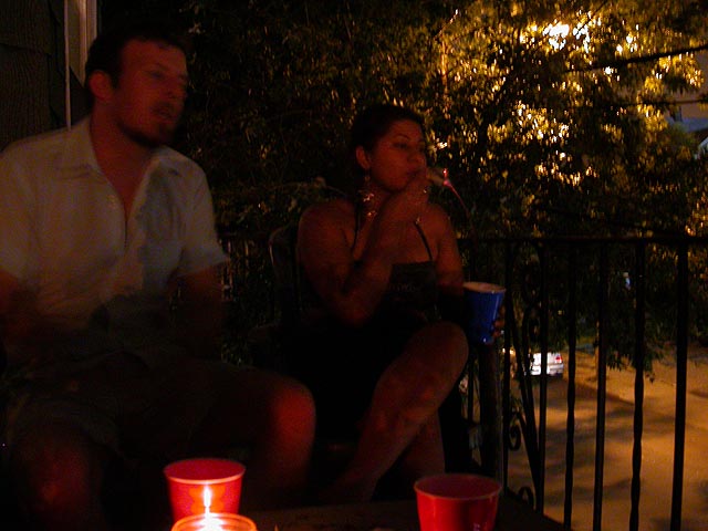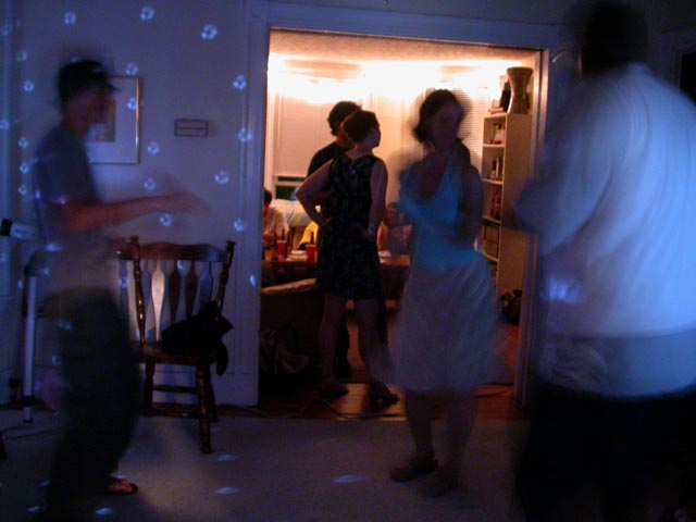 i took a shower and got changed before going back out again, riding the bike to julie's place, where party sounds could be heard as far as down the street. the last party at their place was back in february, the bling bling party. some people were sitting on the steps as i snaked my way into the house.