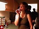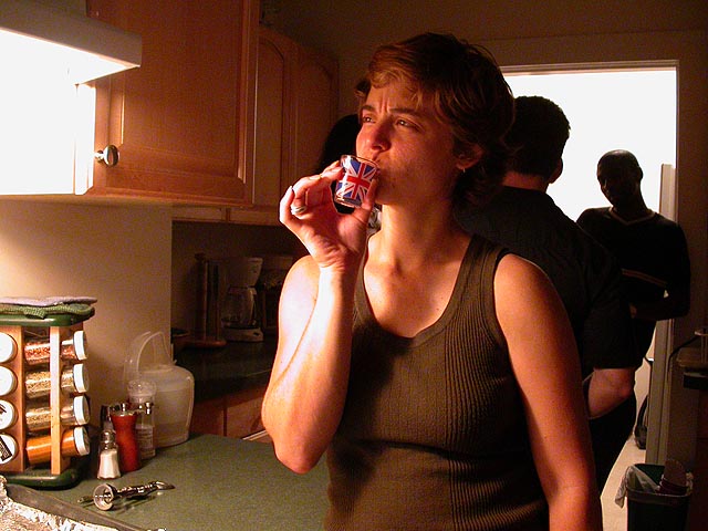 i saw julie's roommates, radha with her boyfriend (whom was the rationalization behind this party, a birthday party), and kim, back from central america, completely bronzed, slightly drunk, super friendly. a table of assorted booze sat in the kitchen, while out in the dining room there were some food,