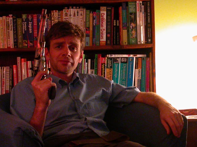 when i met rob many years ago, not in my wildest dreams would i think that one day he and i would be roommates. whle rob finished off his burrito, i made some ramen for dinner. he set up his macintosh in the bedroom, having to remove the base of his large monitor in order to make it fit the computer table. he surprised me with his recent cellphone purchase, all colors with a built-in camera.