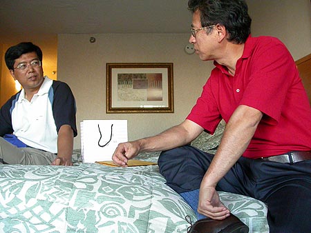 he had the sony DSC-T1 digital camera and some 3-CCD sony camcorder. the language of gadgetry is universal apparently. although this was just the second time my father was meeting zhang yu, everyone chatted like we've known each other always, like close family. he had great stories of all the hurdles he had to jump in order to get here, like applying for a US visa with a stack of paperwork, to prove to them he wasn't a flight risk. coming into the US, he had his luggages thoroughly searched. he didn't arrive empty-handed, bringing with him with presents from china, as well as photos to share. likewise, my father did the same, with a homemade dvd of some family videos for zhang yu to take back to china. i got a business card, and what i found really interesting was the number of digits in chinese phone numbers, with several hundred billion possible combinations (probably impossible to memorize, but the only way to accommodate such a large population).