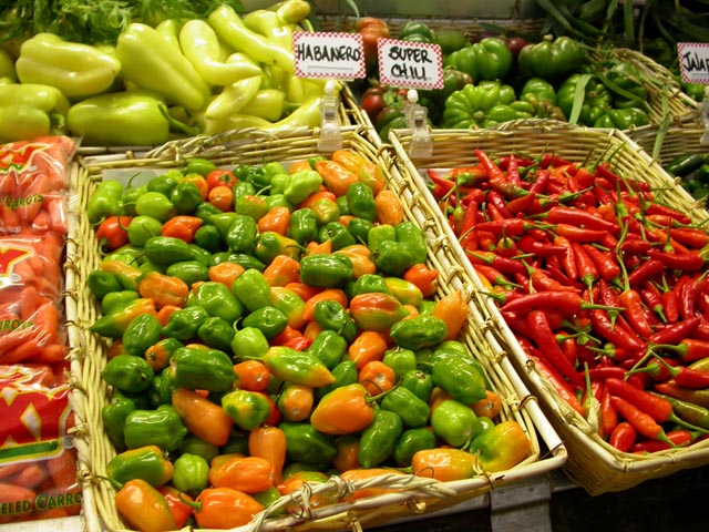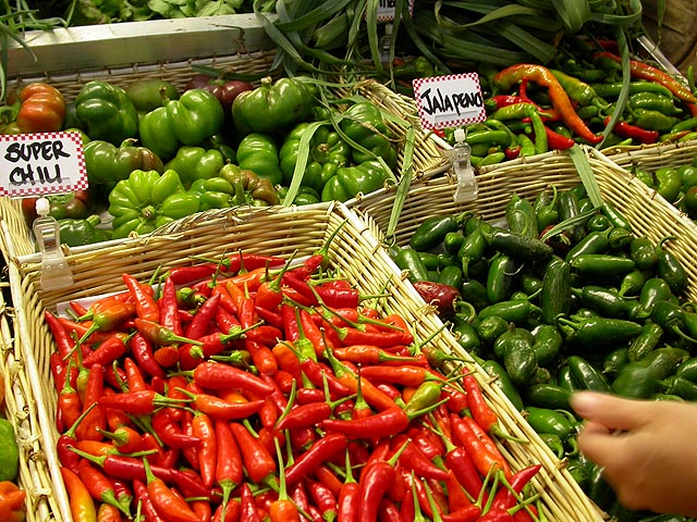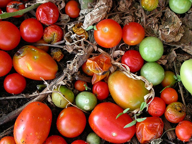 i went home, changed into my swimming trunks underneath my jeans, then took the bike to julie's place, my yellow swimming flippers sticking out of my bag. as is customary with every visit, i inspected her vegetables, which, as always, are lush and bountiful. things are going so well as a matter of fact, that she actually uses unwanted cherry tomatoes as ground cover/fertilizer for her plants. i was surprised to see that some of her jalapenos were actually red; i thought green was as far on the color wheel they'd get, so i had already picked mine off.