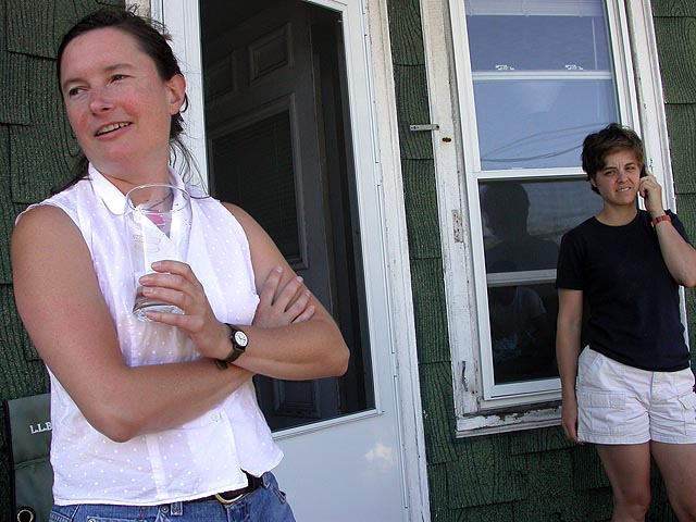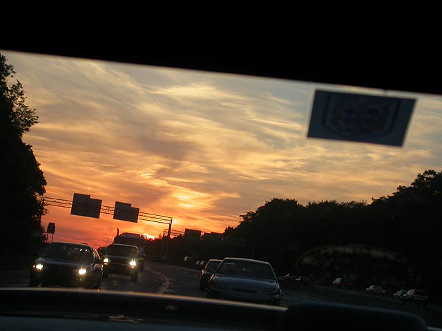 julie bought me a patriotic red-white-blue rocket popsicle from the ice cream van. after leaving walden pond, we went to go visit a farmer's market nearby to see what kind of special items they had to offer. they had some really nice-looking peppers and i wondered what they do with the vegetables they can't sell, do they grind them up and use it as fertilizer, or maybe they just make a lot of vegetarian dinners. julie got an apple and each each bought a bag of kettle-cooked popcorn. we out-raced the sunset behind us as we got back to somerville, listening on the radio about manny ramirez hitting a homer.