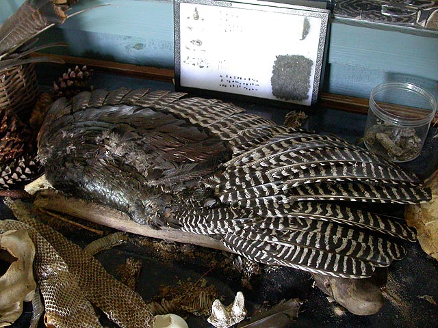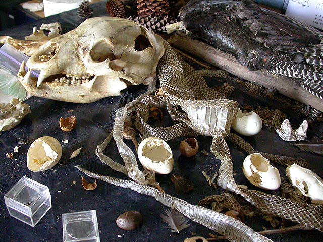 i woke up this morning to drive down to sturbridge with my parents to go camping at the wells state park. turns out the campsites were all booked up for this long labor day weekend and of course we didn't have the foresight to make a reservation. for a $2 parking fee we were allowed to use the picnic area and walk the 10 miles worth of trails, so that's what we decided to do. i visited the interpretive center nearby, a mini-museum of sorts, filled with a rather morbid display of skulls and furs and skins and feathers of animals found in the park.