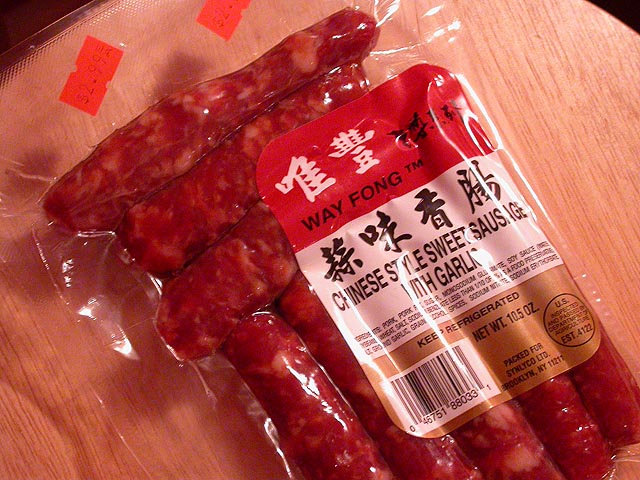 after visiting katrinka, i went to c-mart in chinatown to buy some groceries: a few ramen packets, some plums, and a package of chinese sausages. i weaved through dense boston city traffic to get myself across the longfellow bridge to kendall square and a familiar ride home. i went next door to buy some last minute items: onion, more drinks, salad greens. the fact that the people shopping at this time of day were far more attractive than the usual star market clientele didn't escape me. 6pm is when the pretty people go food shopping, write that down. i went back out again when i forgot to get light bulbs. i went to the dollar store for those, and while i was there i also picked up some glassware bowls ($1.50/piece).
