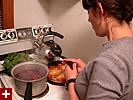 if i thought the farmer's market was impressive, our next destination just blew my mind. renata's always harping about this produce place she goes to in watertown, that has all these great stuff ("they have 10 different kinds of bok choi"), but honestly, how good can a place like that really be? well, i now know the answer after visiting russo's for the very first time. i didn't know produce could be like this, it's a paradise for vegetarians and anyone who eats organically. they have vegetables and fruits there that i haven't seen in a long time or just plain haven't seen ever. and the colors! when i painted my condo, i must've been dreaming about a place like this: orange, red, green, yellow, purple, blue. i bought some bottled sanpellegrino chinotto and some early season pomegranates. renata bought a bunch of groceries and at the last minute asked if i wanted to have dinner at her place. yes.