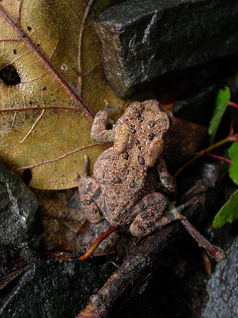 sparing renata the brunt of the attacks, bundled up in several layers of clothing with only her face showing. occasionally i'd look back and see mosquitoes flying around her head and one ambitious bloodsucker even managed to bite my poor companion on her ass through her jeans. a dramatic vista overlooking the snaking charles river could be had if we went further into the reservation, but several factors prevented us from doing so: no trail map, no gps, no identifiable trial, and an unwillingness to feed anymore mosquitoes. i also thought conditions were ripe for more eft sightings, but this point in the season, with more and more dead leaves on the ground, it's hard to pick them out of the background if they do exist. the rain however seemed to motivate the toads to come out of hiding, and every now and then something that looked like a rock would hop out of our path. a rather suspicious man (who drove a pickup truck) went into the forest the same time we did, walking ahead of us. very soon afterwards he came back out (maybe because of the mosquitoes). we weren't sure what he was doing, but i could swear i smelled wacky tobaccy. renata, having not had anything substantial to eat prior to leaving, fed from my generous supply of trail mix that i keep in my bag. being that we're both nature lovers, it's surprisingly that this is only our 3rd outing together, but it seems everytime we go hiking, conditions are always bad. if it isn't freezing and snowing, then it's too cold in the early spring, and now this third variation, wet and buggy. i wouldn't be surprised if renata never comes out with me to do naturing ever again.